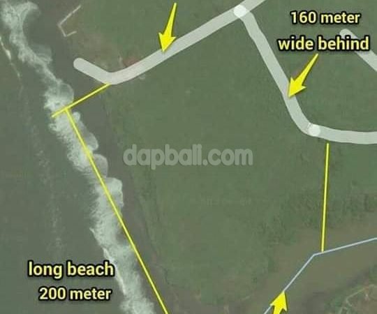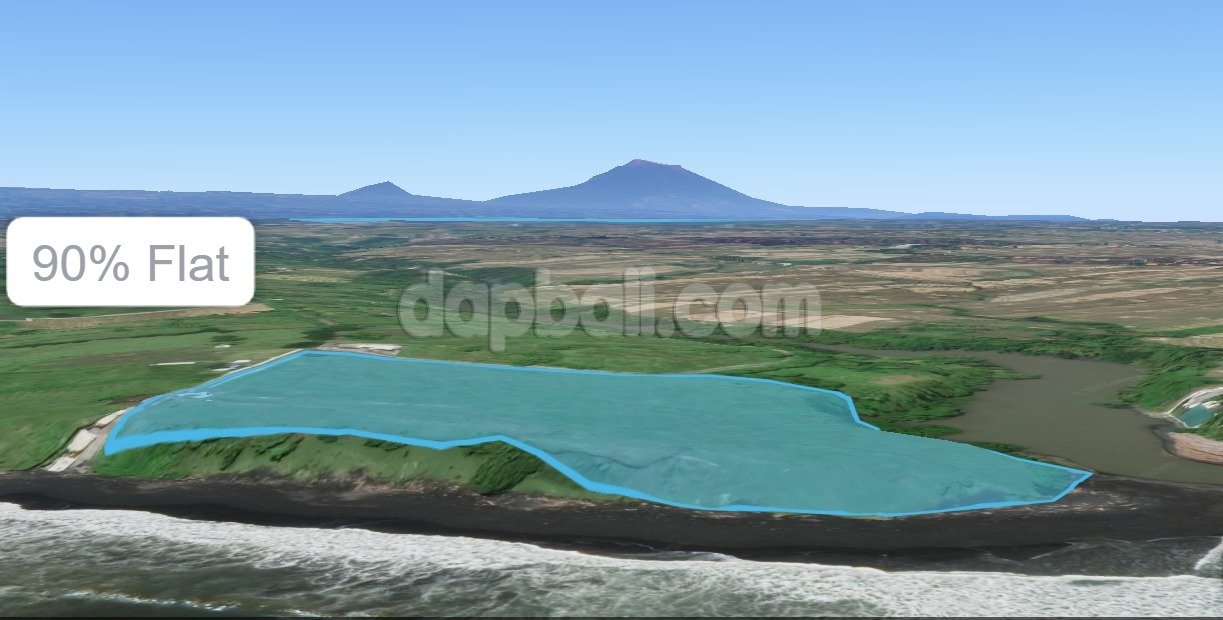 A 35,900 m² plot of seaside land is for sale in area of Beraban, Tabanan, Bali. Having 200 meters length dimension facing ocean of Pantai Nyanyi, this property has amazing 180° ocean view, mountain, and statue of Garuda Wisnu Kencana. Place in the area of resorts and villas, this area has safe and comfortable environment with flat contour of beach and river lost land. It provide 2 access main road of Jalan Pantai Nyanyi with tourist accommodation zone of ITR, suitable for resorts, villas, investment and various purposes.