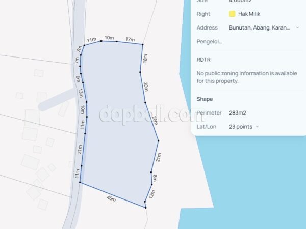 Boasts a stunning exotic surroundings where you can immerse yourself in nature’s beauty. This clifftop land is nestled in an area where you can immerse into nature deeply. Flanked between the main road and ocean over 4000 sqm which perfect to build a tourist accommodation such as hotel or villa complex for your promising investment in eastern part of Bali island. The tranquil atmosphere offered is perfect for those who are seeking a peaceful moments of reflection or simply enjoying the serenity of the natural surroundings. Whether the guests seek relaxation or a connection with nature, this area has them covered. This exotic beachfront land welcome you to discover a stunning corner of the island of paradise, a region that still feels undiscovered, Amed – Bali. The lack of crowds combined with idyllic black sand beach, jungle, reefs, and calm, turquoise water make it one of the most laid-back beautiful spots to visit in Bali. A truly pledging business indeed with very good price, So get soon!