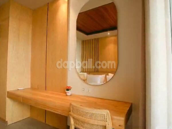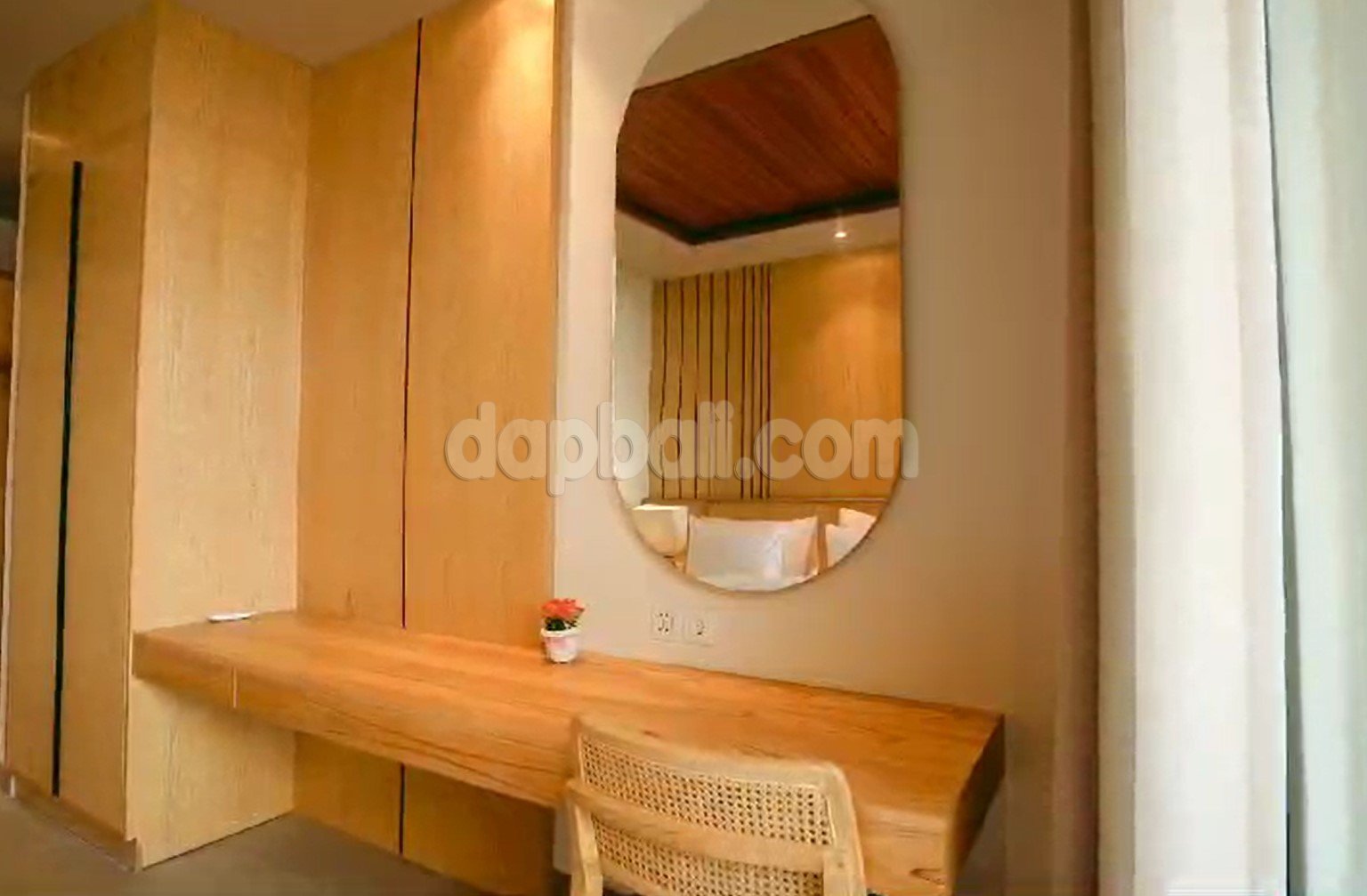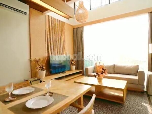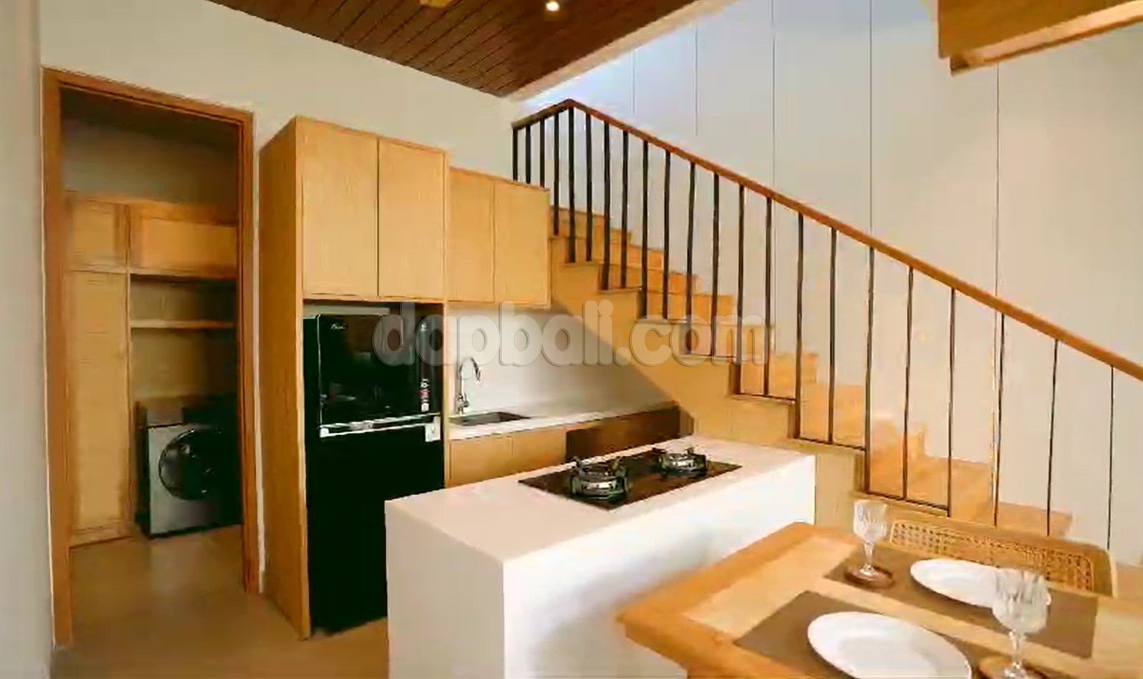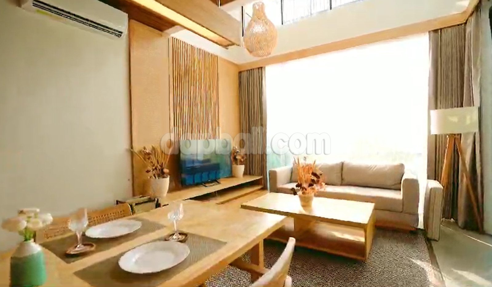 They are connected one another and overlooking onto the private pool and the small tropical garden. Equipped with a lovely sofa, tv, a coffee table, drawer, a four-seat wooden dining table, and fully equipped kitchen. All crafted in natural tones of interior and contemporary furnishings