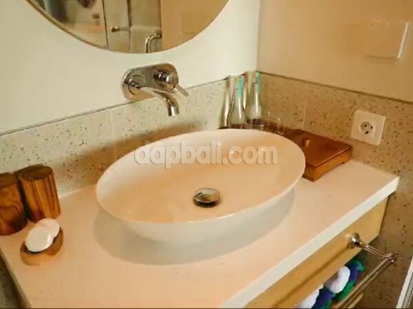 It’s positioned in outdoor surrounded by mini tropical garden can be direct access from master bedroom and living room. It is a cozy spot to relax during the day and enjoy the Bali’s sun and breeze.