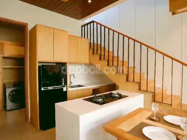 This modern minimalist villa is brand new, located in Canggu is home to Bali’s best of these both worlds of the rice field and the beach, is in less than 3 km apart from each other which offer convenience for people wanting to enjoy the true Canggu experience. At this region you can find the recreation centers, yoga classes, and organic cafes within easy access and that will also create a memorable experience event while exploring the beauty of Canggu. The three-bedroom villa is wrapped in contemporary furnishing with an alluring charm of the architectural design. Built on 120 sqm of land as two floors with total building area is 193 sqm and was using good materials and tastefully furnishings. It is using many natural material elements such as woods, rocks, and natural fabrics enhances the serene atmosphere throughout surrounding area. The serene atmosphere and beautiful surrounding will giving you a moment of tranquility that can make you feel relaxed and rejuvenated during your stay.