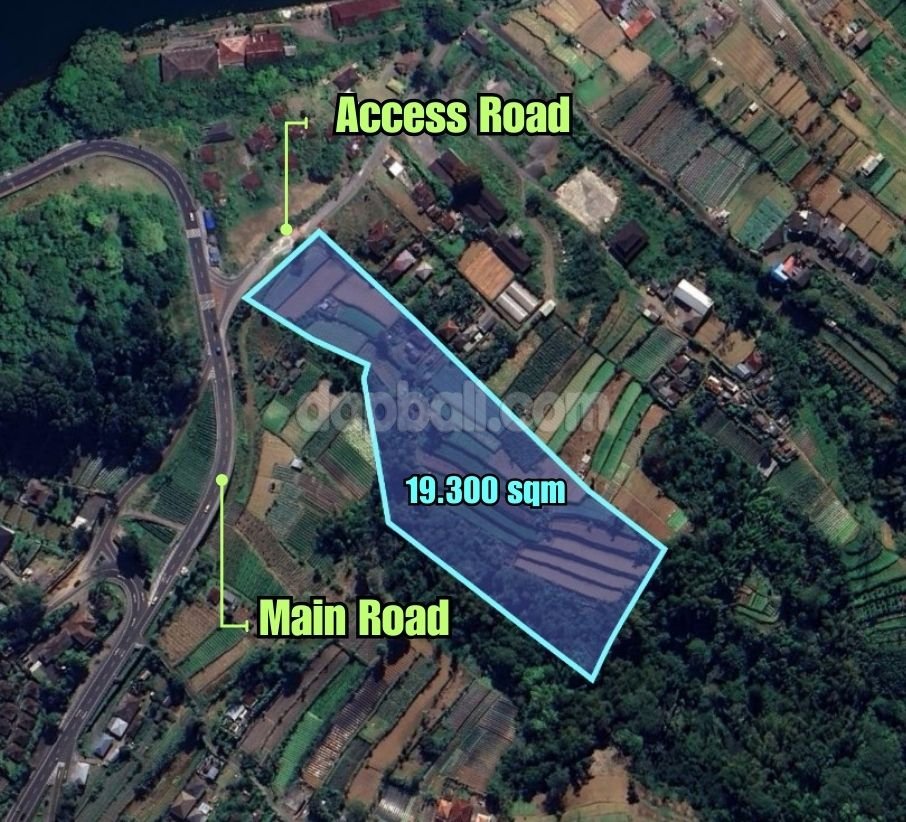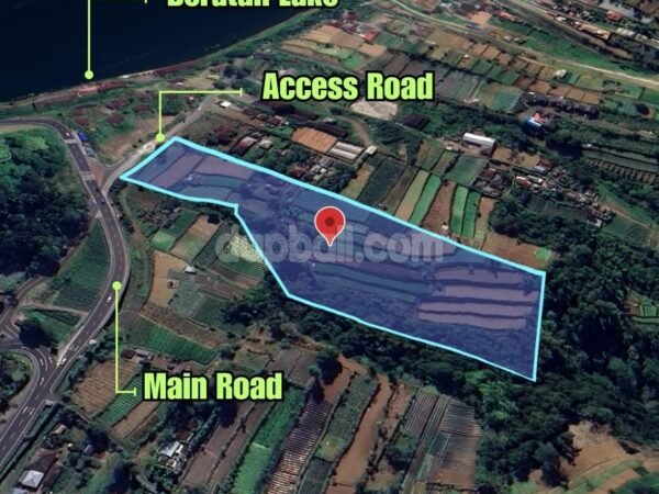 Conveniently situated in the main province roadside, a huge size of vacant land for freehold sale. Features nearly 2 Ha with flat and terraces contour, offers unparalleled landscape views of the uplands North North Bali, where you can enjoy the unspoiled natural beauty. Nestled approximately 200 meters to the volcanic lake that presents a perfect backdrops of misty mountain, lake, jungle and local farms. This land would be ideal for developing plots for residential or villa complex or even a luxury retreat resort. At this region anyone can enjoy life peacefully, where nature creates art – Incomparable views serenaded by birdsong and a choir of crickets, a place where the real Bali is alive. Located approximately 2 hours and 10 minutes drive from Ngurah Rai International Airport, 1 hour and 45 minutes from Seminyak and within walking distance to restaurants, tourist attractions, and other public facilities. With its strategic location on the main roadside, breathtaking views, tranquil environment and very good deal offering make it one of the most potential property you can not ignore! So, do not hesitate to get it soon!