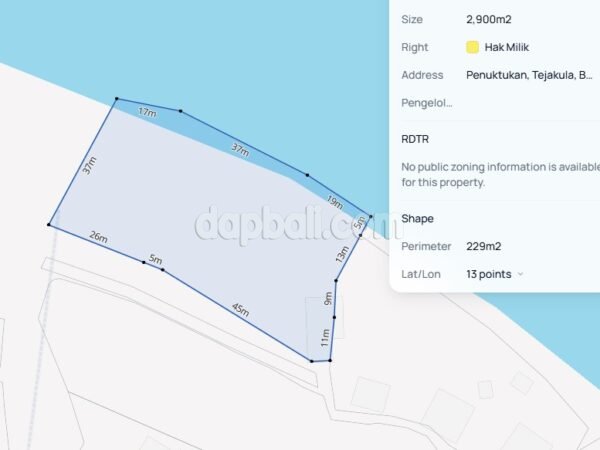 This prime beachfront land is giving you a huge opportunity to make your dream come true, either it’s for living or business investment both will suit this land features. Build a luxury private villa as your holiday home in Bali or a boutique resort or even a beachfront restaurant/bar/club and more for your promising business investment. Lift your head in the morning after waking up and enjoy the clear view of the sea with the tranquil serenade of nature as well enjoy the fresh and clean morning dew.