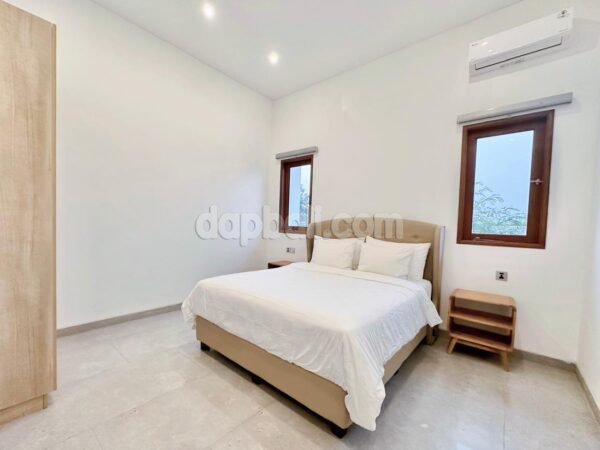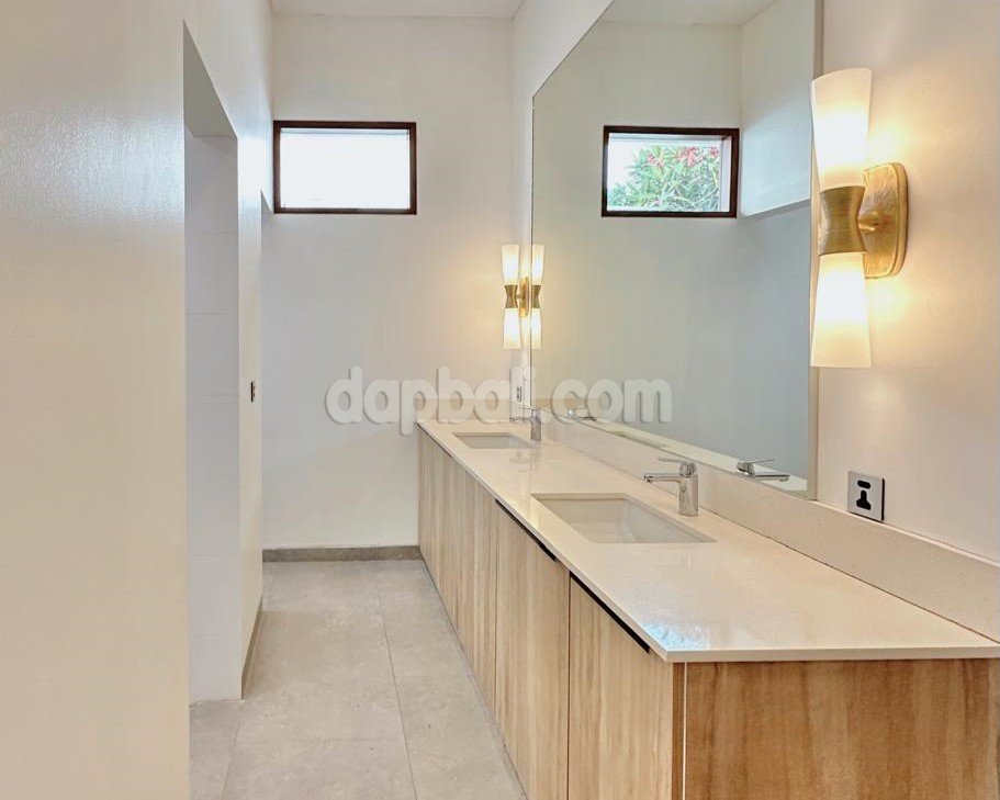Consisting of three-bedrooms, each with its own ensuite bathroom with additional one bathroom for general use. The rooms are nice and tidy, equipped with double bed, wardrobe, drawer and table, air conditioning. All rooms are crafted in natural tones interior that’s boasting a comfortable tropical ambience.