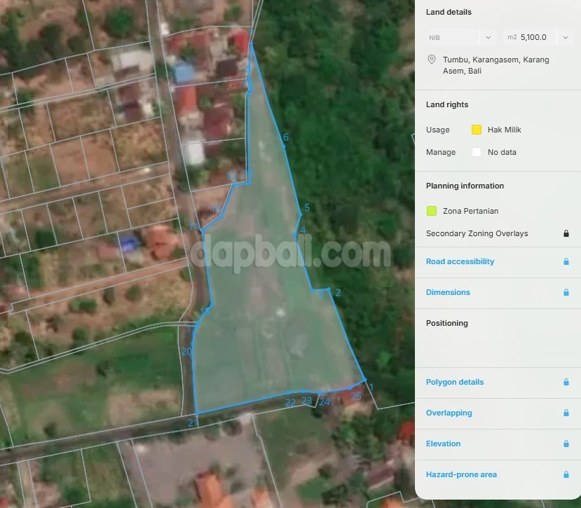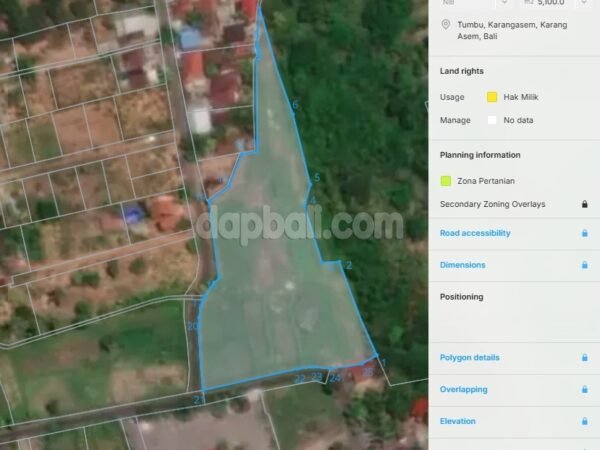 Experience the true beauty of nature and the genuine Balinese village through this beautiful land. Nestled in an authentic area of Bali, in the eastern part of the paradise island, a 5100 sqm land is available for lease offers breathtaking natural views, tranquil surroundings and easy access to Virgin Beach, Lempuyang Temple, Tirta Ganga, Lahangan Sweet, Ricefields and Water Palace Ujung. A place thay gives you a chance to experience a little piece of paradise and create unforgettable moments. Ideally situated in the main roadside and neighbouring the local residence, resort and the famous attraction Taman Ujung Palace. This land is perfect to build a private luxury villa or hotel that will give you abundance opportunity to develop your investment in Bali. With its unbeatable natural views of majestic mountain, jungle vista, terraces rice fields, and a chance to witness the uniqueness of Balinese way of life, yet the tranquil atmosphere will attract the tourists to visit. This is a place of tranquility awaits, where every tired mind and soul could be healed and recovered.