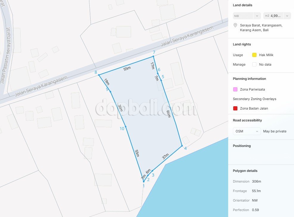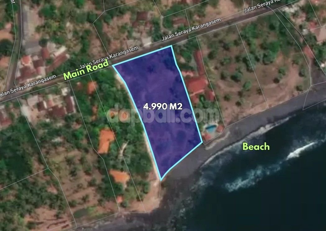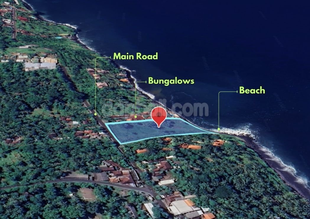 Perfectly located at the beachfront and on the main roadside, flanked between bungalow and villa. This land presents a perfect feature for building and creating a business space for tourism support like an accomodation or restaurant or beachclub/bars. Boasts a 4990 sqm of land offers an exotic yet captivating views with serene and relaxing atmosphere, suitable for travelers seeking tranquility and adventure. Located just 110 minutes away from the Bali’s International airport, this land offers convenient access to both the natural beauty of Bali and the vibrant city center. Being spread away from crowds that ensures a tranquil escape from the hustle and bustle, while still being within reach of Bali’s attractions and landmarks. This area is suitable for those seeking a romantic getaway, a family vacation, or a peaceful retreat, the tranquil atmosphere promises an unforgettable experience amidst the natural beauty of Bali. Otherwise, this land also would be perfect to build a private oasis to enjoy a little piece of paradise alike for your holiday home away from home in Bali. Or, keeping it for long term investment will give you a high return indeed!