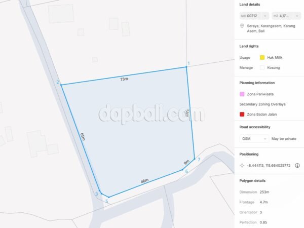 Convenient location on the main roadside with amenities are ready on the line such as electricity, water and internet. Located not very far from the beach, approximately 10 minutes drive away and also in proximity to the local residence and public facilities. Furthermore, this land are offers unparalleled views of Ocean, Lombok island from distance, mesmerizing sunrise, and the greenery of Lempuyang hills.