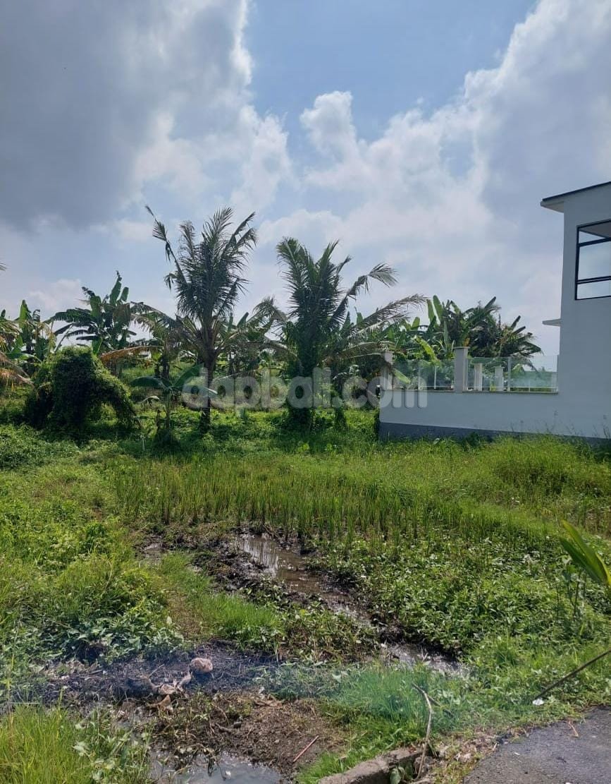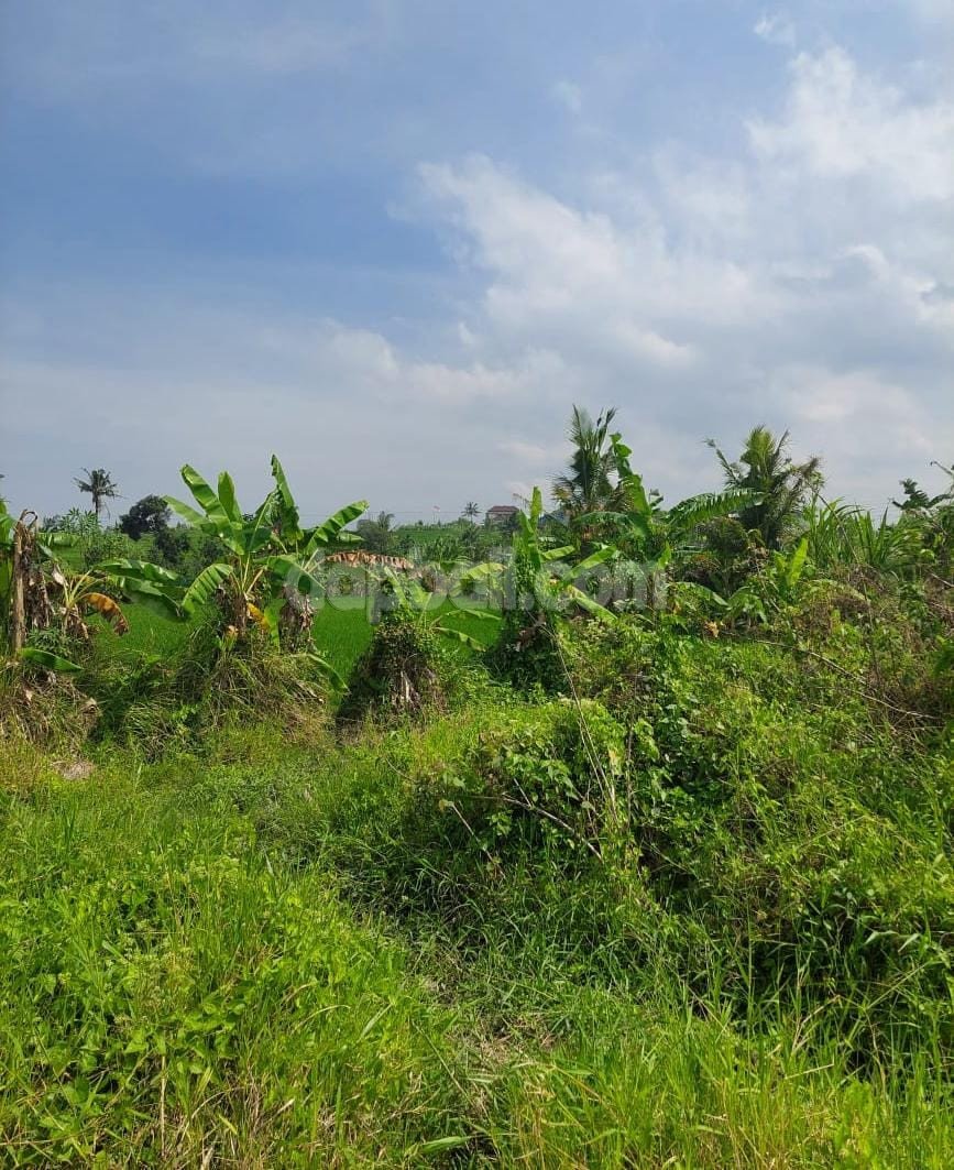 a land in a big size and suitable for rice paddies plantation, house for private living or temporary building for culinarry business such a cafe and restaurant in the field with rice field, mountain and clear sunset scenery, as this land has a green/ farming spatial.
