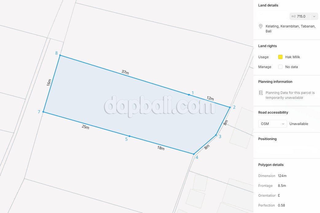 39164 – 715 sqm of prime plot positioned on Pink/Tourism zone for sale in Kelating beach area, Tabanan