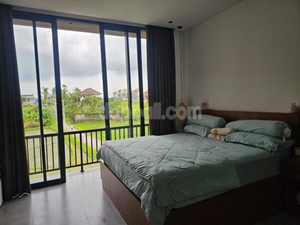 The stylish living area features a large sofa that can accommodate up to 6 persons with flat TV in addition to the amazing view on the pool garden and rice fields. It is well air-conditioned and links to the kitchen and dining areas. Next to the living area, is the long plain strong wood dining table accommodates easily 4 – 6 persons. On one side the fully-equipped kitchen where you can prepare your favorite meals. The outdoor private pool has a blue Ocean waters surrounded by parakeet woods. It’s a nice spot to take a fresh dip and unwind while sunbathing. The mini garden is manicured with tropical plants and flowers. The bedrooms are equipped king-sized bed with own ensuite bathroom. And the master bathroom has bathtub too. The master bedroom is also direct access to the pool by glass sliding door, complete with a working table and all rooms are air-conditioned. The rooms upstairs have balconies and overlooks onto a scenic rice fields. The contrast between the high level of equipment and details and the ultimate comfort in a very authentic environment of terrace ricefields is unique as well. This villa boasts a comfortable homey ambience in a very strategic location in North Kuta that gives you the true Balinese experience with a direct view on the rice field that can be illuminated at night. And being located in Babakan – Canggu is giving you a chance to live in the coolest area in Bali and enjoy the hip and happening of Bali.