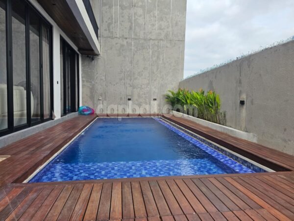 This beautiful villa is a 4 bedrooms offers calm environment mixing tradition and modern art with a contemporary architecture, up to date equipment and high quality of materials. The villa is located in Canggu, in very close distance to the famous Echo, Berawa and Batu Bolong beaches. Built in 205 sqm land size and building 250 sqm two floors by modern contemporary architecture. Modern materials have been used to build this villa and the interior design fits the high end residential villa. At the same time, the contemporary aesthetic furnishings such as wardrobes, drawers, kitchen set, etc give this modern villa an elegant twist.