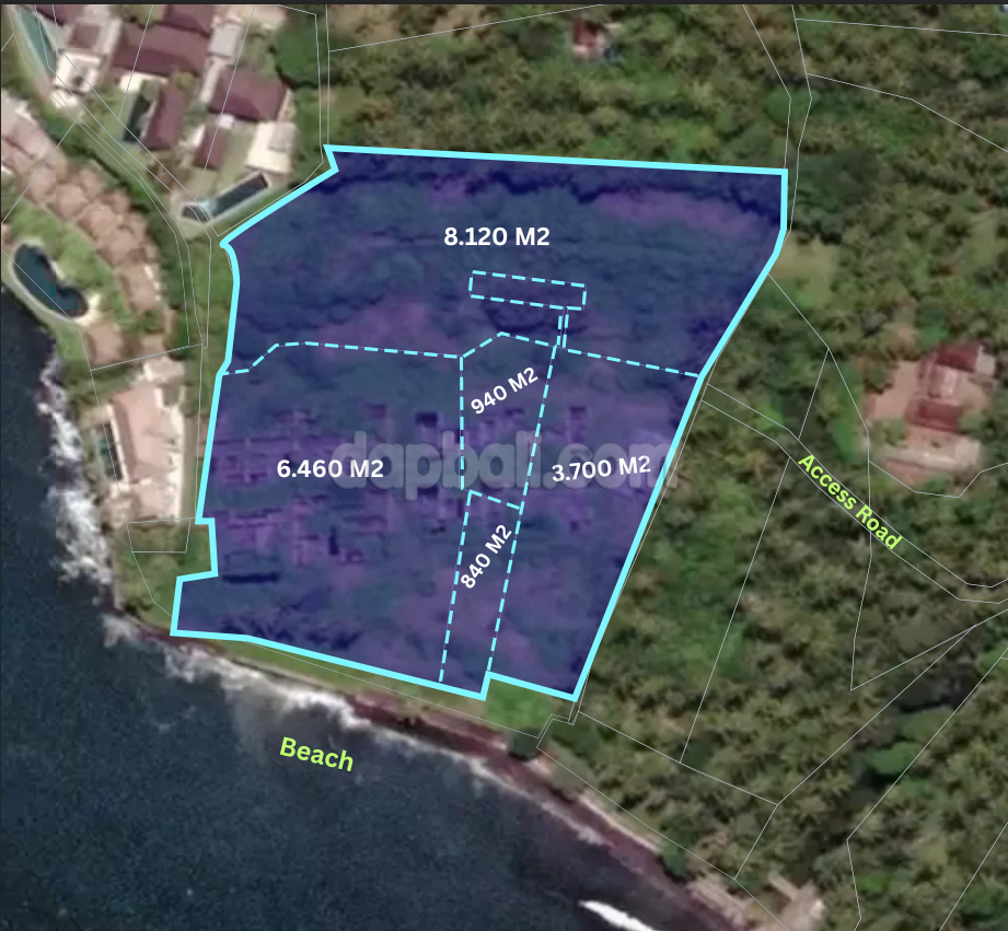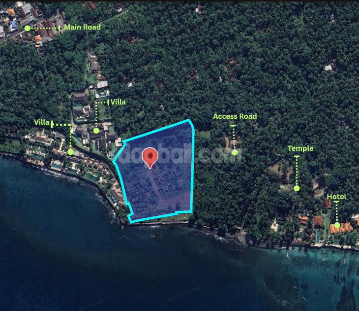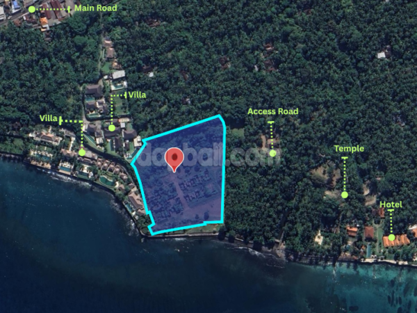 Discover this exclusive expansive land, perfectly located at the beachfront that overlooks the beautiful Lombok Strait and the Island of Nusa Penida. Boasts a total size over 2.13 acres with exclusive accommodations environment, this land is perfect for building a commercial business like an exclusive accommodation (resort/hotel/luxury villas) that offers scenic ocean views and tranquil tropical atmosphere where guests can experience Bali’s unparalleled majestic nature. Furthermore, here guests also can immerse in Bali’s traditions, activities and cultural experiences. Adds on a variety of water activities such as swimming, snorkeling, scuba diving, boating, and fishing that are available at the beaches of Padang Bay and Tulamben, or right on this land private beach will attract guests to visit and stay. This land area is also blessed with many nearby Balinese cultural sites, including the ancient village of Bali Aga, Goa Lawah, Ujung Water Palace, Tirta Gangga Royal Palace, Besakih Temple, and Amed villages. With its convenient location just a 5 minute drive to Central Candidasa and 20 minutes to Padang Bay Harbour, this land is giving you a huge opportunity to start and create a multi-faceted business investment in the eastern part of Bali.