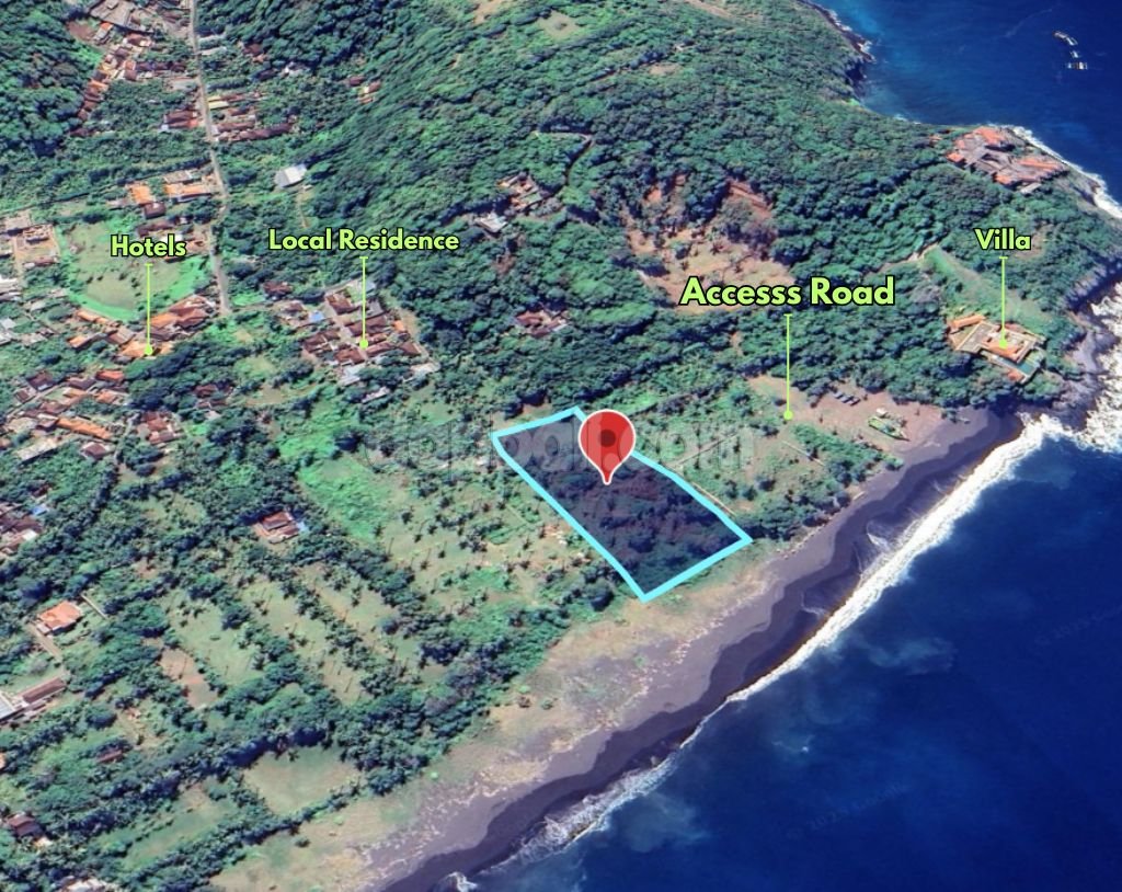 Nestled amidst the serene beauty of East Bali, right at the exotic beachfront of Mimba Black Beach. This beautiful land offers a tranquil ambience that is perfect for a retreat destination for those seeking a peaceful escape. With its stunning surroundings and serene atmosphere, this land is the perfect for building a resort or luxury villa as destination for a rejuvenating vacation. From the moment you discover this land area, you will be captivated by its serene ambiance, incredible views of the ocean, Nusa Penida Island and lush greenery. As you arrived at the location you will immediately feel a sense of tranquility and serenity, and know the potency of this property for a promising business investment in Bali. At this place, guests will never feel bored as they can explore the genuine Balinese village and the nearby attractions. It is the perfect choice for those seeking a peaceful getaway in Bali, where guests can experience the tranquility and beauty of this enchanting destination. With its great features of 7000 sqm of ground, convenient location at the beachfront, this area provides easy access to the city’s must-see destinations, while still offering a tranquil escape from the bustling streets, merely 5 minutes drive from Padang Bai Harbor, and walking distance to public facilities. A truly potential property for commercial business or long term investment!