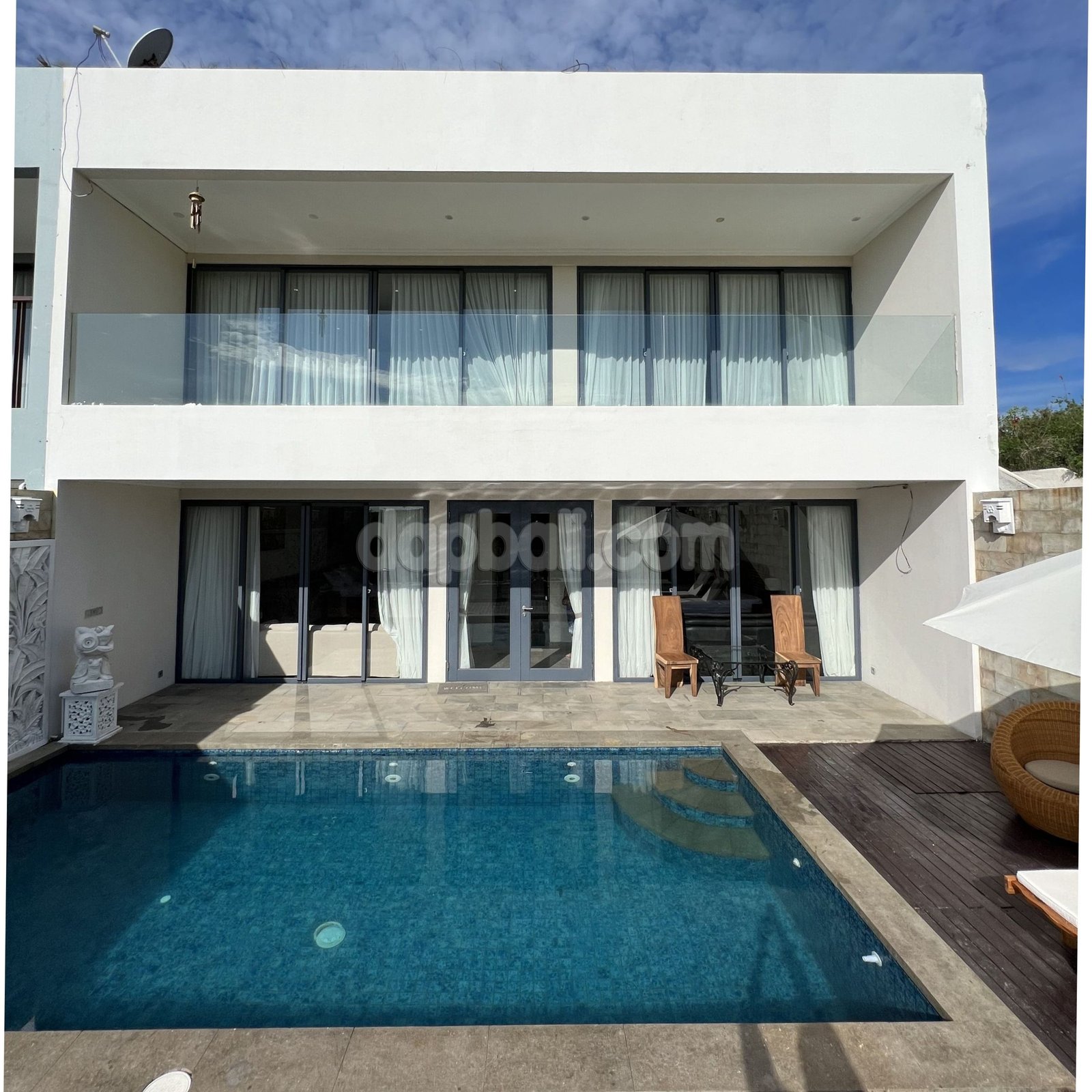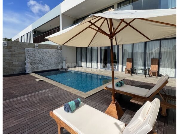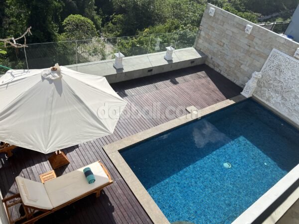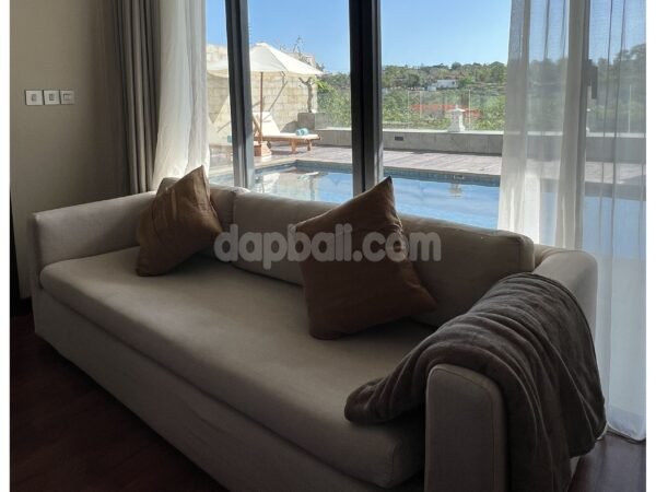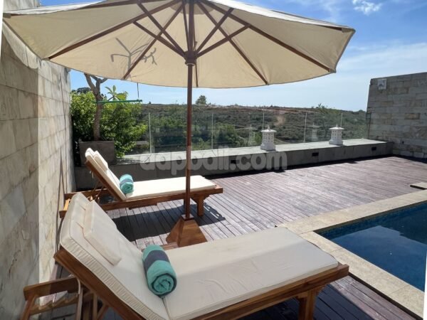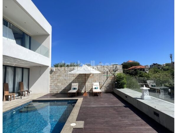 Immerse yourself in the beauty of Uluwatu’s oceanside at this stunning villa that is just a short walk from Dreamland Beach. This villa offers a luxurious and tranquil retreat for you who are seeking tropical paradise ambience. With its stunning architecture and world-class amenities, this villa is the perfect destination for those seeking a truly unforgettable vacation. As you step into the villa, you will immediately be captivated by its elegance and sophistication. Boasts a total of 3 well-appointed rooms, each with its own bathroom which exquisitely designed to provide the utmost comfort and style. Whether you choose the spacious ground floor room or upstair rooms, you can expect nothing but the finest furnishings, modern amenities, and breathtaking views of the surrounding landscape and the ocean. Designed over two floors on 233 sqm of land with total building size +/- 300 sqm, the villa embodies unique design, modern comfort and tropical ambience striving to create a sense of home. Features a stunning indoor living room with ceiling fan, sofa, flat tv, and it’s direct access to the swimming pool by glass sliding door, fully equipped enclosed kitchen and casual dining room with strong wood table and benches. The swimming pool is attractively surrounded by wooden deck and sunlongers with umbrella, presenting a panoramic views of lush greenery. Built and designed with high quality standards of materials and furnishings that provide the comfortable modern living. And with its convenient location just 38 minutes drive from Ngurah Rai International Airport, the property offers easy access to Bali’s vibrant attractions and natural wonders. Whether you want to explore the beautiful beaches, immerse yourself in the local culture, or simply indulge in the villas’ facilities, this villa provides the perfect base for an unforgettable Bali experience, that’s making it an ideal choice for a memorable family vacation.