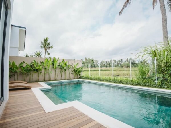 Experience the tranquil beauty of the rice fields each season from our villa compound, where nature’s bounty is on full display, especially during harvest. Each season offers a unique, breathtaking view—an endless cycle of life and renewal right before your eyes. The villas are beautifully built from the finest local materials by skilled craftsmen, showcasing a deep natural connection to our beloved island. They have been designed to balance the energy flowing throughout the space, creating a truly peaceful atmosphere to unwind and relax in. Each delicate detail from the handcrafted art hanging in each room to the stunning tile roof tells a story of gratitude to the natural world and shows a passion to display its beauty. Each room at this villa is designed to provide an unforgettable experience, merging the beauty of nature with essential modern conveniences. Each unit is designed with 2-bedroom en-suites, making it perfect for families or small groups. The fully equipped kitchen set allows you to prepare meals just like at home. With a private pool and carport, each unit offers convenient amenities for a comfortable stay. And with a cozy living and dining area each villa is perfectly suited for all types of travellers. Whether it’s for business or leisure use, the villa comes equipped with all the modern necessities one could wish for.