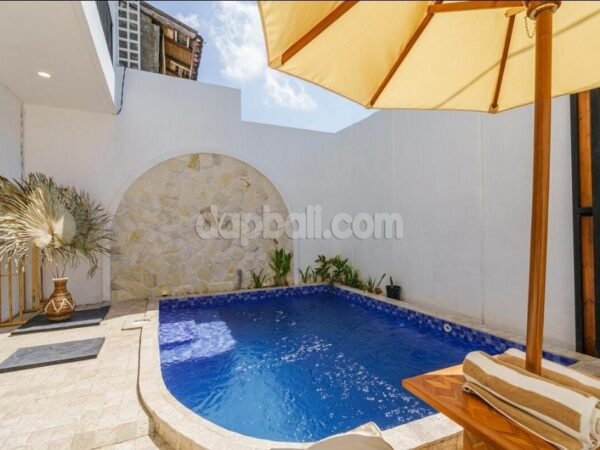 This two-story stylish villa is decorated with notes of wood combined with numerous pieces of eco-friendly, modern, contemporary-style wall-hangings and artwork. With floor-to-ceiling panels and sliding glass doors in the villa, you can enjoy the warm Bali sunshine streaming in every day. Inspired by the contemporary Balinese living concept wrapped in Mediterranean design, the villa creates an ambience of balance and harmony within the property being sited in an undisturbed landscape. This villa ensures memorable experiences by offering a blend of comfort and natural beauty in the tranquil rural setting of Canggu, Northern Kuta, Bali. This luxurious villa is entirely dedicated to a generous contribution, inviting guests to experience a sense of tropical serenity. When it comes to relaxation part, this villa features a private plunge pool at outdoor with high wall, well-equipped kitchen and dining area, large bed and spacious air conditioned bedroom ensuite bathroom, balcony with scenic view of the surroundings on the second floor, a cozy and well air-conditioned living room, kitchen ensuite dining room with fully equipped kitchenette, etc. Set in 80 sqm of land, with total building size is 95 sqm, all the setting and decor maximize the comfort standards of living. The materials used in this construction include high-quality standards like marble flooring and timber, making it a truly wonderful place to live in Bali.