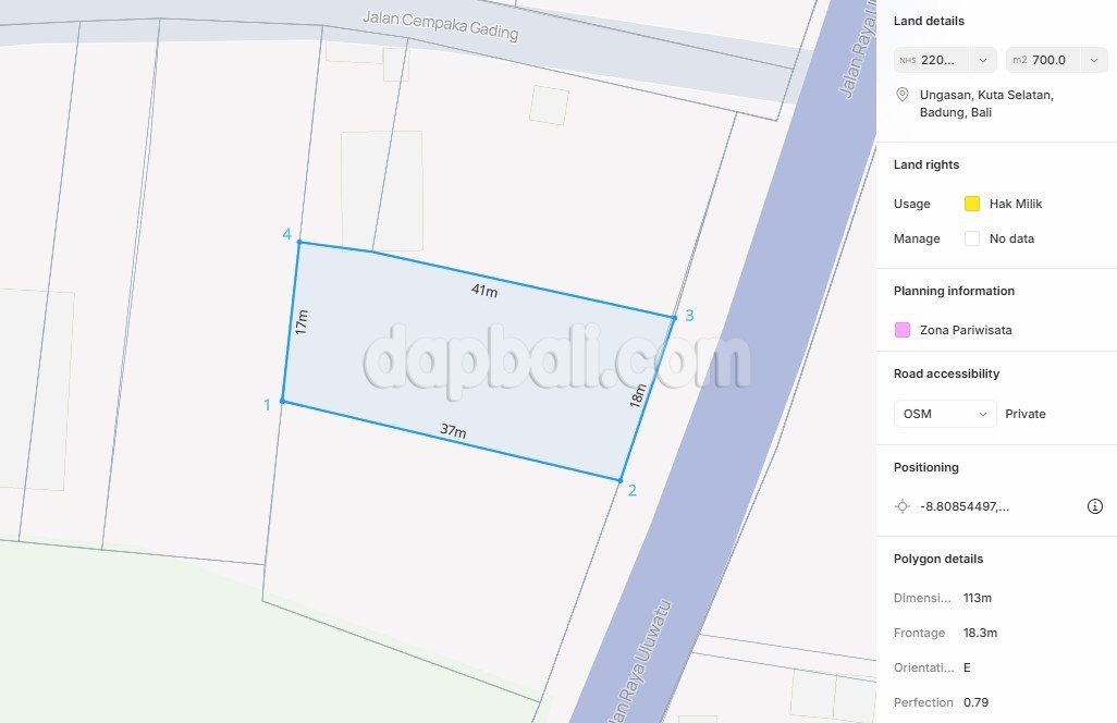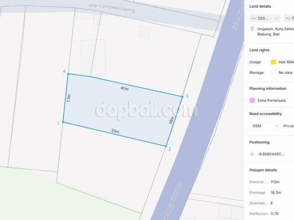 42455 – Commercial land of 700 sqm for sale located on the main roadside of Ungasan – Uluwatu, Bali