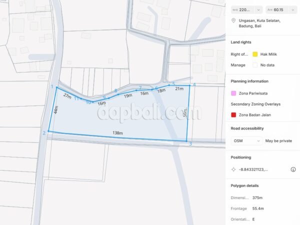 LandRoadside Dijual BadungKuta SelatanUngasan