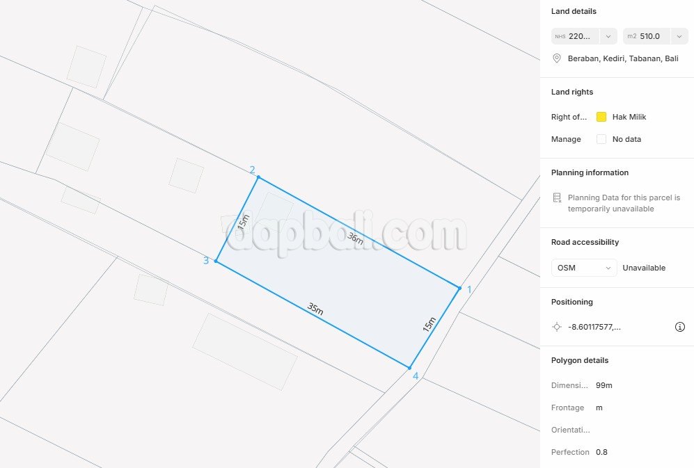 43072 – 510 Commercial land for freehold sale in Kedungu, Tabanan