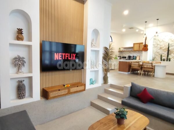 This villa invites you to enjoy paradise and experience the tranquility of living in Bali, where the sunlight kisses your skin and a gentle breeze soothes your soul. Being close to the city center provides a serene escape, yet keeps you connected to Bali’s exciting attractions and cultural landmarks. Just 2 km distance down to the stunning Kedungu beach, 4.6 km from Tanah Lot Temple and 9.8 km from Canggu. With its elegant design and lush surroundings, setting the stage for an unforgettable experience. So, if you’re looking for a quiet getaway in Bali, this villa is an excellent choice to enjoy nature and tranquility.