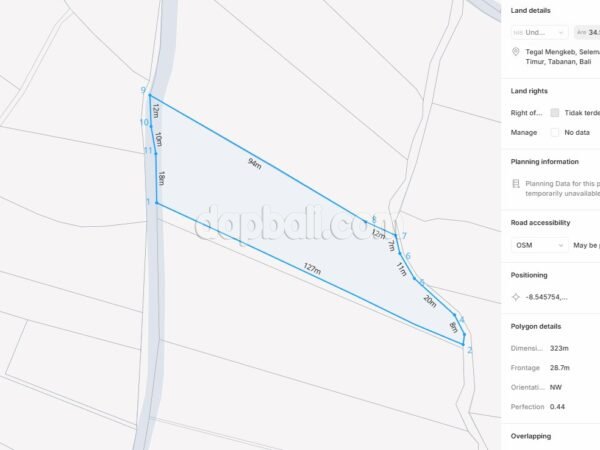 This beautiful land offers a tranquil ambience suitable for developing a private villa complex or residential area for those seeking a peaceful environment. With its picturesque surroundings and warm hospitality of the locals, this area provides a truly authentic Balinese experience. Conveniently located just a short stroll, about 1 km to the stunning Kelecung beach, 2 hours drive away from the airport, and 18 km from the iconic attraction Tanah Lot Temple. This beautiful plot is perfect for creating a peaceful oasis away from the tourist crowds. The area offers a breathtaking view of rice fields, the ocean, and sunset, the soothing sounds of nature, and the gentle tropical breeze, which creates a tranquil tropical atmosphere. It’s the perfect place to unwind and rejuvenate your senses in the authentic Balinese village. This area is an ideal place for both living and leisure activities, making it a prime location for relaxation and enjoyment. If you’re looking for a long-term investment, this land also provides an ideal opportunity due to its potential for residential or recreational use.