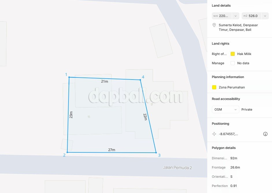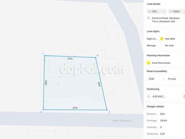 Take advantage of this unique opportunity to acquire a prime property in a commercial hotspot in East Denpasar, Bali. Located in Sumerta Kelod, the central area of Denpasar, Bali, this place is recognized as a hub for local residential and business activities. This property offers a generous 526 sqm of land, complemented by a building featuring 3 + 1 bedrooms and a spacious total building area of 358 sqm. Situated in a tranquil area, surrounded by beautiful greenery and provides a 4.5-meter-wide access road leading to a local residential neighborhood. With its peaceful environment and spacious layout, this property is perfect for families looking for comfort and a touch of nature in urban lifestyle. This area is perfect for living as it provides a calm and quiet environment right in the city center, making it an ideal place for those who appreciate tranquility. Not only great for living, but it also supports business opportunities like a boarding house, ensuring a balanced lifestyle. Make sure not to lose this fantastic property when you have the chance!