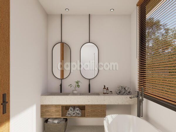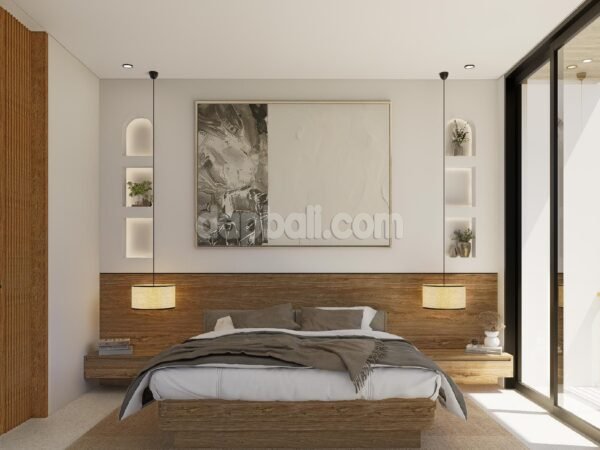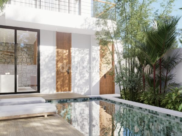This villa offers a modern architecture that beautifully blends with its tropical surroundings and is available for a 20-year leasehold, semi-furnished. This villa offers a seamless blend of luxury and contemporary elegance, providing comfortable living right in the heart of Jimbaran. Located just a three-minute drive from Balangan beach, this luxury villa defines comfort in a prime area of Bali. This property sits on an area of 150 sqm with a total building area of 130 sqm, arranged as a two-story building. It features floor-to-ceiling glass windows that provide a stunning view of the private pool and garden, contributing to a serene tropical ambiance. This design enhances the overall tranquil atmosphere of the surrounding environment, making it an ideal retreat. By choosing this villa as your dream home in paradise, you are guaranteed to have every morning filled with sunlight and refreshing ocean breezes. Take a moment to relax on the nearby beach while enjoying the peaceful atmosphere, which can enhance your appreciation for both nature and the community. Visit the exciting attractions nearby, like the Uluwatu, it is a scenic and spiritual region on Bali’s southwestern Bukit Peninsula, famous for its majestic cliff-top Uluwatu Temple, world-class surfing waves, picturesque white-sand beaches, and high-end cliffside beach clubs and resorts. It is a destination for those seeking natural beauty, spiritual experiences, surfing adventures, or luxury relaxation against the backdrop of the stunning Indian Ocean. Explore the various activities available here, whether you want an adventurous experience or simply want to enjoy a staycation. Whether you are a business traveler or a vacationer, this calm oasis will be the perfect destination for you seeking a break from hectic schedules. The property boasts a convenient location, approximately 20 minutes’ drive from Ngurah Rai International Airport and just 10 minutes from Jimbaran hubs. The proximity to famous beach clubs and restaurants enhances its appeal as an ideal relaxation spot. This villa is constructed using high-quality materials in natural tones, which blend perfectly with the tropical setting while prioritizing comfort. Every aspect of this villa is designed to enhance your living experience, making you feel like you’re living in paradise.