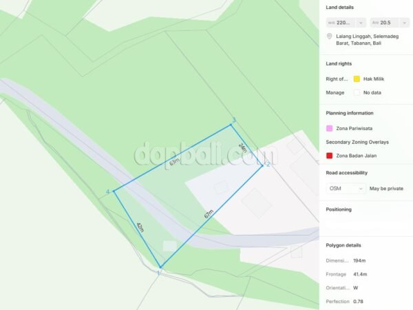 Surrounded by pristine nature, this land offers a unique opportunity to establish a beautiful retreat, promising an unforgettable experience in Bali. Whether you seek tranquility or an exciting experience, this land near Balian beach is the perfect gateway to explore Bali’s west coast. The land is perfectly positioned in the heart of lush rice fields, creating a stunning view that brings peace and serenity. The land contour is flat, making it a secure location for construction at any time since all the necessary documents are entirely valid and prepared. Given its proximity to the main road, just 250 meters away, and the 4-meter-wide access road, construction progress is expected to be efficient and trouble-free. This land would be ideal to build a tranquil luxury accommodation, such as a villa or resort, for your promising business or perhaps a private villa for your tranquil oasis in Bali, where you can get tranquility and privacy, as it is located in a mystical and radiant village situated on the least spoiled side of the island. Here in the region of exuberant nature, we can find stunning sunsets and some of the best island surfing action around.