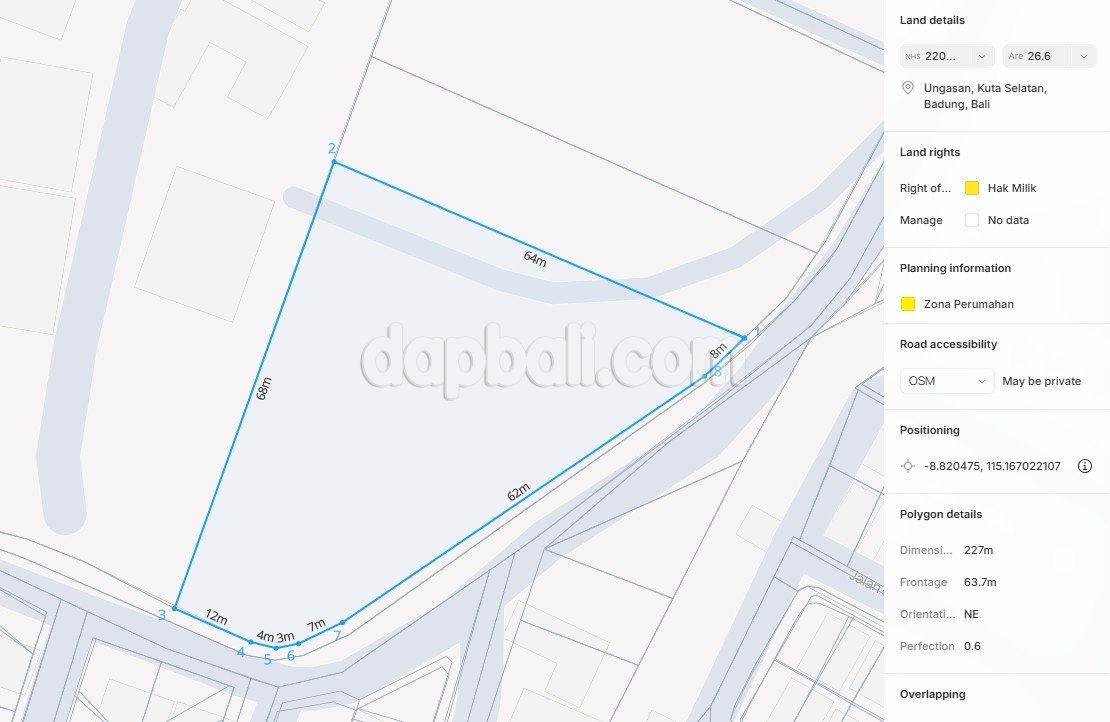 Nestled in the heart of Bali’s fast-growing Ungasan area, one of the most sought-after investment zones in the south. With a total size of 2,660 m², this land is ideal for building a villa complex, boutique guesthouse, or long-term investment project. Large plots like this are increasingly hard to find, especially with such prime positioning. Strategically located, the property offers easy access to Bali’s key destinations: only 5 minutes to the iconic Garuda Wisnu Kencana (GWK) cultural park, 10 minutes to the famous Melasti and Pandawa beaches, and just 20 minutes from Ngurah Rai International Airport. The land is directly connected to a main road, ensuring smooth accessibility while being surrounded by a peaceful neighborhood of private villas, local residences, and boarding houses. The surrounding area is rapidly developing with many villas and expat residences, creating a high potential for both rental income and capital appreciation. Whether you are looking to develop a hospitality business or secure long-term investment in Bali’s booming southern corridor, this property offers exceptional value.