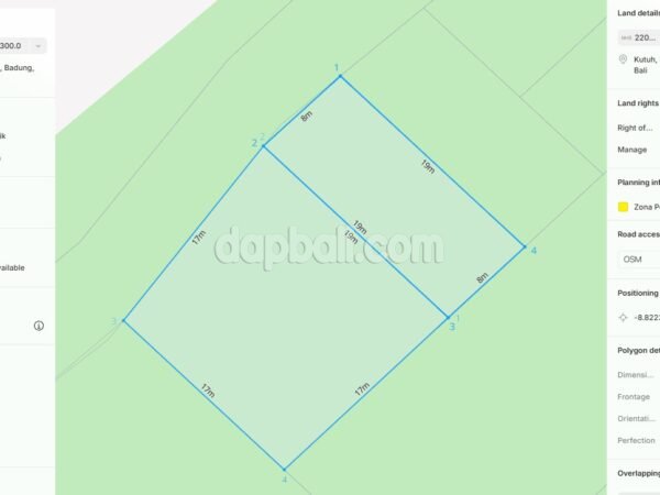 A rare opportunity to acquire 450 m² of freehold land located in the growing residential and villa neighborhood of Kampial, Nusa Dua. With a generous 35-meter frontage and excellent rectangular shape, this plot is perfect for developing a private residence, rental villa, or a small cluster of homes. The property is situated in a yellow zone (ITR Perumahan), making it ideal for residential development and ensuring long-term value. Strategically positioned, the land offers both convenience and lifestyle advantages. Just 3 minutes from Poltekpar Campus, it presents strong rental potential for students and staff. Within 10 minutes, you can reach the famous Pandawa Beach, known for its white sands and clear waters, making this an excellent option for building a vacation villa. Additionally, the world-class resort area of Nusa Dua is only 13 minutes away, offering fine dining, shopping, and entertainment. This prime accessibility adds to the land’s value as both a residential and investment property. The property also benefits from a 4-meter-wide access road, providing easy entry for cars and motorbikes, and is surrounded by established villas and residential homes. With two separate freehold titles (SHM), investors also have the flexibility to purchase and develop in stages, or resell part of the land later at a profit. From an investment standpoint, Kampial is a rapidly developing area with rising demand for housing and rentals, especially due to its proximity to Nusa Dua’s tourism hub. Land prices in this area continue to appreciate, making this plot an attractive buy for those looking to secure a high-growth asset at today’s competitive market rate. This property offers the perfect balance of affordability, location, and investment potential. Whether for building your dream home, creating a profitable rental villa, or securing land in one of Bali’s fastest-growing residential areas, this Kampial plot is an opportunity not to be missed.