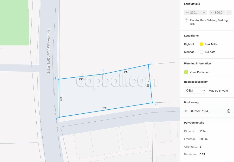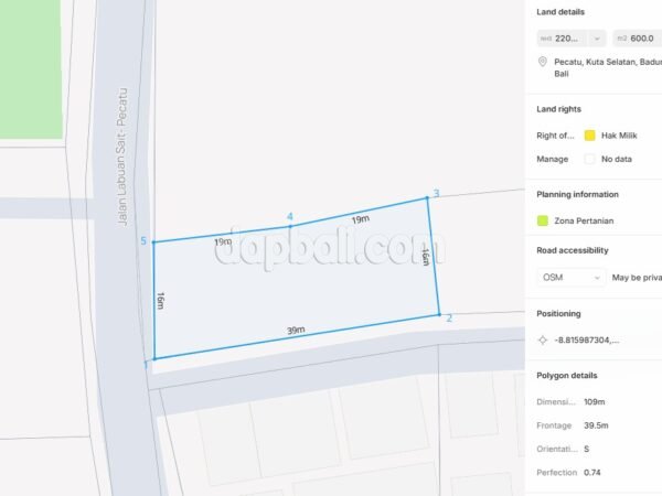 Discover this premium land which is available to freehold located directly on Jalan Labuan Sait, one of the most prestigious addresses in Pecatu, South Bali. This exceptional property is only a 3-minute walk from two of Bali’s most iconic beaches – Padang Padang Beach and Thomas Beach – making it an unrivaled location for investment, development, or a private retreat. This land offers an unbeatable position at the very heart of Pecatu’s tourism and lifestyle district. Jalan Labuan Sait is the vibrant artery that connects Uluwatu’s most desirable destinations, filled with high-end restaurants, stylish cafes, boutique shops, and luxury villas. Surrounded by luxury villas, boutique resorts, and exclusive dining venues, this neighborhood has become a preferred address for international travelers, digital nomads, and long-term expatriates seeking the ultimate Bali lifestyle. With its flat contour and excellent road frontage, the land offers endless development opportunities. Whether you envision a boutique villa complex, a chic restaurant, a wellness retreat, or a commercial lifestyle space, the property’s location guarantees strong demand and high visibility. The combination of rare freehold title, premium walkable location to Bali’s most famous beaches, and being set within an exclusive neighborhood makes this property a high-value investment.