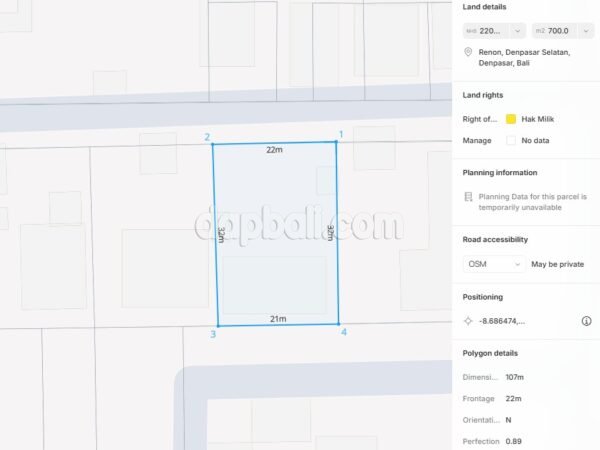 44909 – Prime plot of 700 sqm for sale located in the heart of Renon, Denpasar