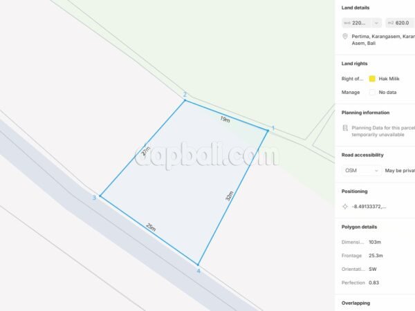 Located just minutes from the famous Virgin Beach (Pantai Pasir Putih) on Bali’s east coast. This property offers an ideal combination of accessibility, natural beauty, and investment potential — a perfect choice for those seeking to build a private villa, eco-retreat, or boutique accommodation close to one of Bali’s most picturesque beaches. This 620 sqm plot sits right on the main asphalt road, offering easy access while being surrounded by peaceful nature. The land enjoys breathtaking views of Mount Lempuyang, green hills, and everlasting rice fields, creating a serene and scenic environment perfect for a private villa, boutique retreat, or holiday residence. The property comes with a freehold title (SHM), ensuring full ownership and investment security. The area is developing steadily, supported by growing tourism and infrastructure in East Bali. Its proximity to Virgin Beach, local restaurants, and the tranquil fishing villages of Karangasem adds strong value for both residential and commercial development. Enjoy the harmony of Bali’s east coast — where mountain meets the ocean, and the atmosphere remains authentic and peaceful. With its strategic location, panoramic views, and competitive price is offering make this land is a perfect choice for anyone looking to invest in Bali’s rising eastern region.
