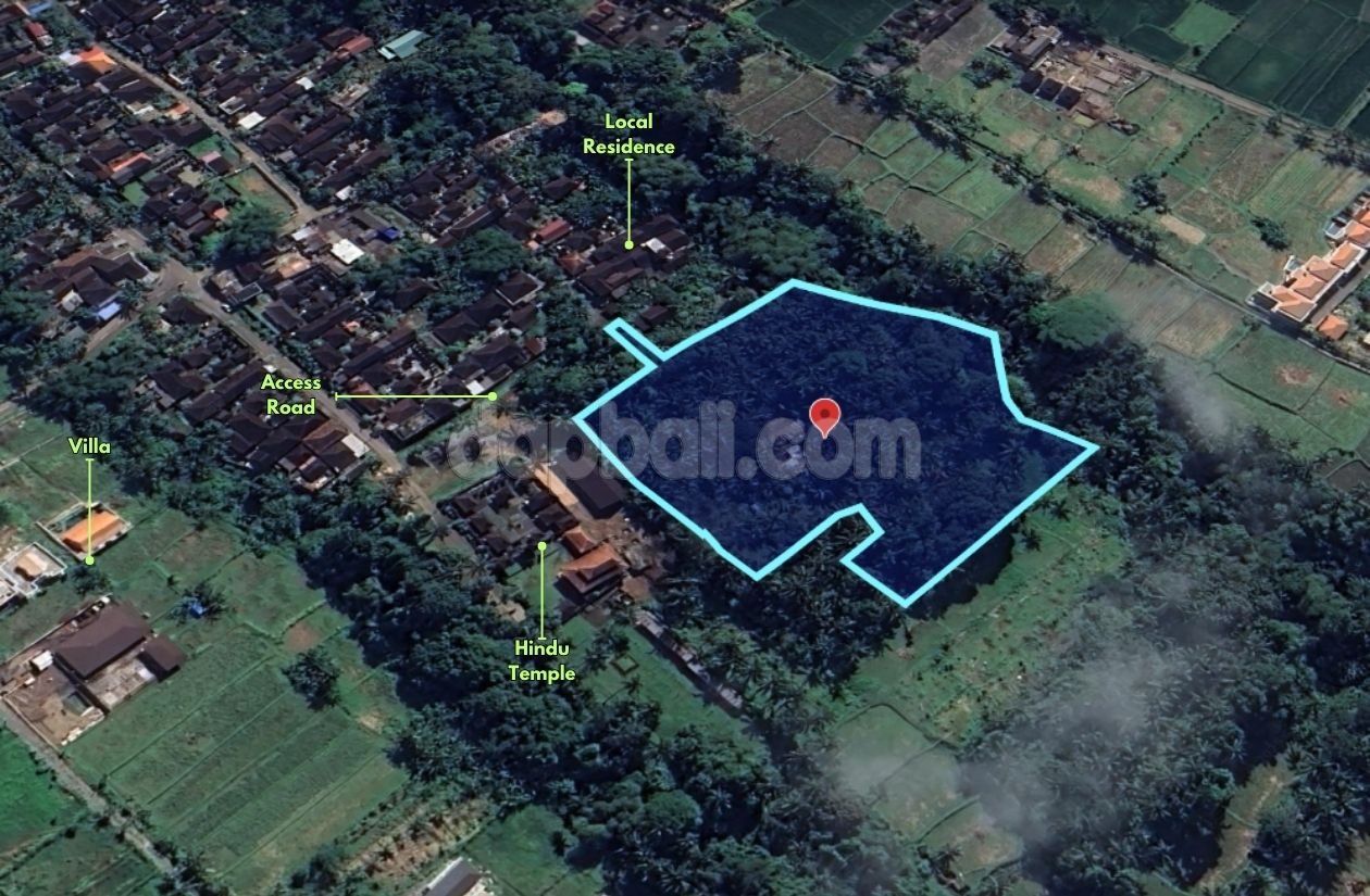 Discover an exceptional investment opportunity in the tranquil village of Pejeng, just a short 20-minute drive from the heart of Ubud. This expansive 11,634 m² (1.16 hectares) freehold land offers a rare combination of serene natural beauty, convenience, and development potential in one of Bali’s most desirable areas. The property features a flat contour, ensuring ease of development and optimal use of space. Enjoy breathtaking views of lush tropical forests and a river frontage, providing a peaceful and authentic Balinese atmosphere—ideal for creating a private villa complex, boutique resort, or residential subdivision project. The land has excellent access via a car-friendly road, with electricity lines already available in the area. Its location near Empathy School and the exclusive Hoshinoya Bali Resort makes it both convenient and prestigious, surrounded by an environment of quiet luxury and nature. This property consists of 21 individual land certificates (SHM) under one owner, ensuring a smooth and straightforward transaction. With its reasonable price offered makes this land a remarkable opportunity for investors or developers seeking large, scenic freehold land close to Ubud — with all the elements needed for a visionary project.