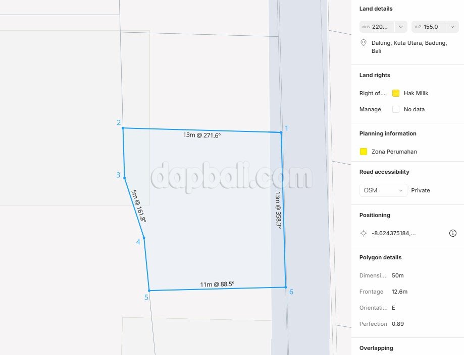 45641 – Small Residential Land of 155 sqm for Sale in Dalung, North Kuta, Bali