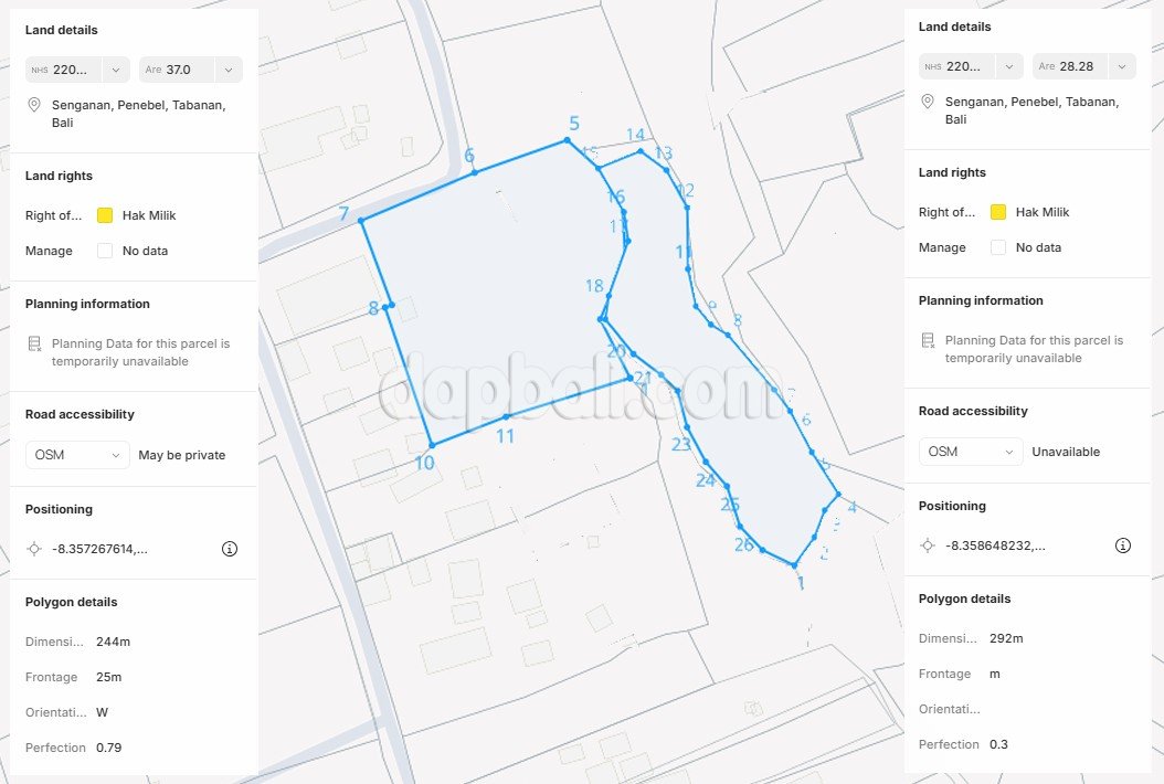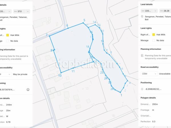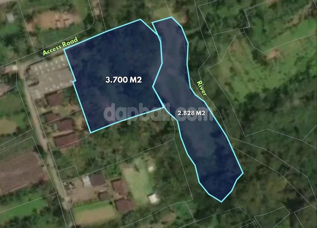 Nestled in the serene countryside of Penebel, this beautiful riverside land offers a rare opportunity to own a large freehold property in one of Bali’s most scenic rural settings. The property spans a total of 6,528 sqm, divided into two adjoining plots of 3,700 sqm and 2,828 sqm, providing flexibility for future development or agricultural use. The land features a combination of flat and slightly sloping contours that gracefully descend toward the river, creating a natural harmony between land and water. With a 4-meter access road, the property ensures easy entry while maintaining privacy and tranquility. Surrounded by lush greenery, local farms, and a traditional Balinese village atmosphere, this location captures the authentic charm of rural Bali. It’s perfect for those seeking to develop a private villa retreat, eco-resort, or organic farm, where guests or residents can enjoy the soothing sounds of nature and river views. Located in Senganan, Penebel, Tabanan Regency, the area is renowned for its fresh air, fertile soil, and stunning landscapes. With a freehold title (SHM) and an attractive price offered, this land is an excellent investment for those looking to build in a peaceful yet naturally captivating part of Bali.