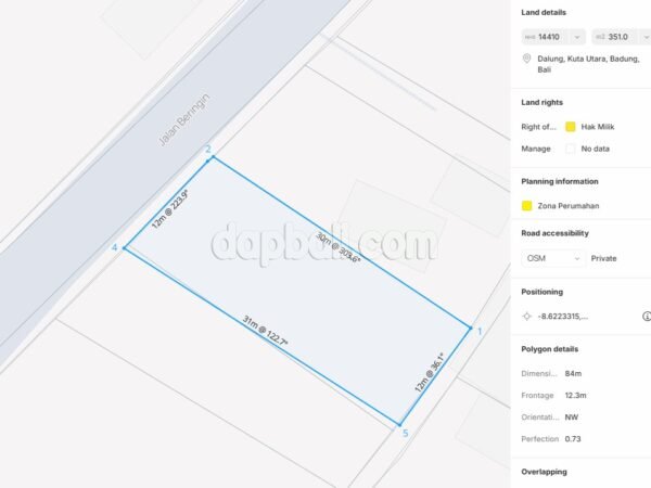 45958 – Prime Land of 351 sqm which Ideal for Villa Development for Sale in Dalung, Bali