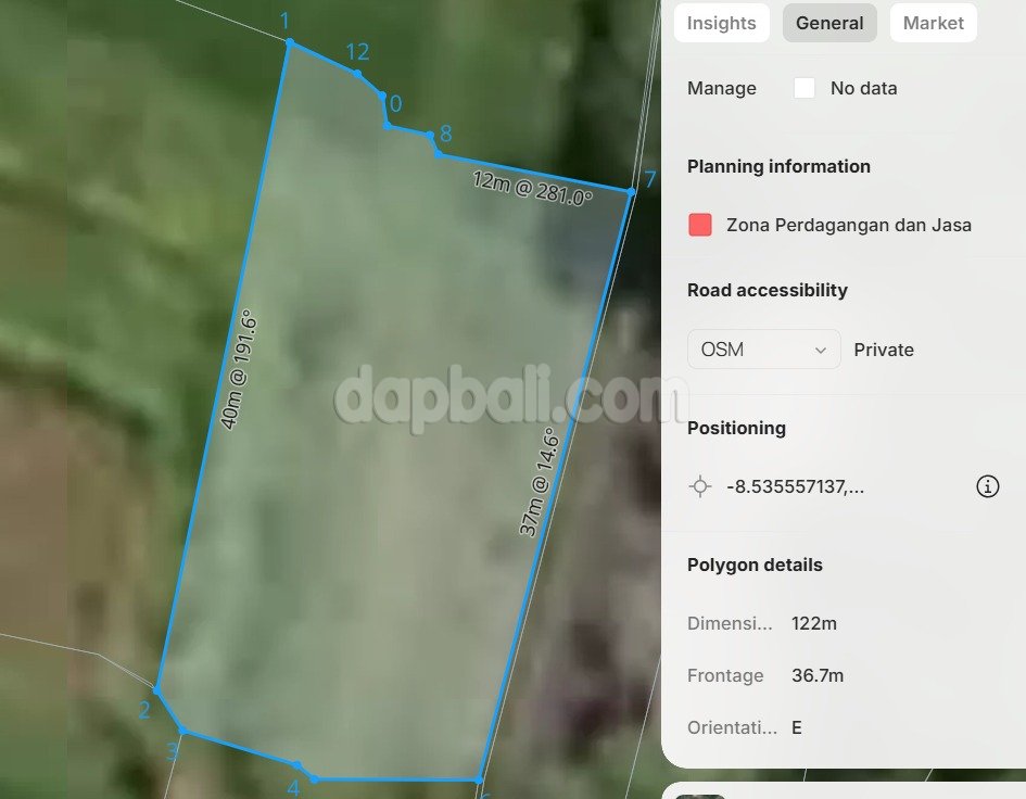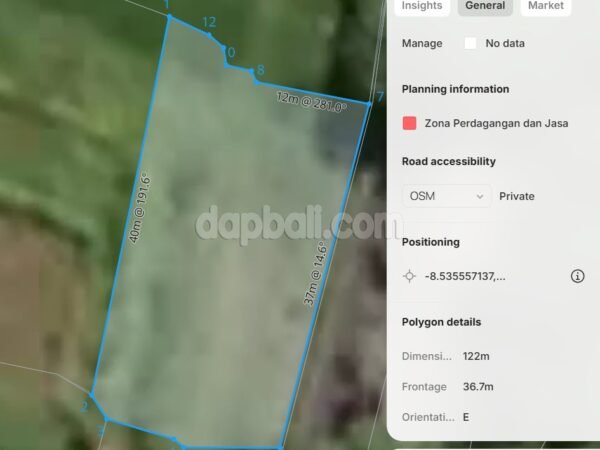Just 125 meters from famous Café and 250 meters from Grocery Supermarket, the land benefits from high visibility, strong foot traffic, and easy accessibility. The property offers an expansive rice field panorama combined with a serene mini tropical forest, creating the perfect balance of commercial potential and natural beauty.