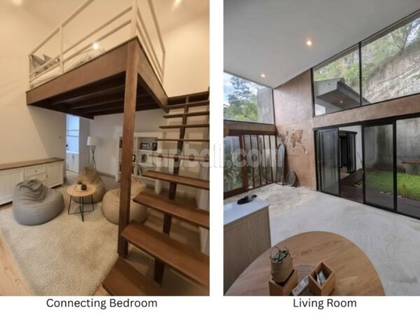 The villa features three well-appointed bedrooms, including a spacious Master Bedroom complete with an en-suite bathroom for ultimate privacy and comfort. The two additional bedrooms share a connecting en-suite bathroom, making this design particularly suitable for families with children or visiting guests. This smooth, functional layout enhances daily living while maintaining privacy across sleeping areas. Supporting the main living spaces are several highly practical additions, including a dedicated maid’s room with an en-suite bathroom and a separate storage room, offering extra space for household essentials, luggage, or seasonal items. These additional rooms significantly enhance the villa’s long-term usability and make it ideal for both full-time residence and rental operations. The villa is equipped with well water and a water reservoir, ensuring a reliable and consistent water supply throughout the year—an important feature for Bali living. Outdoors, the property includes a charming garden area, a balcony space for relaxation, and a secure carport for easy parking. For buyers or tenants seeking more luxury, an optional swimming pool can be included or added to elevate the outdoor living experience even further.
