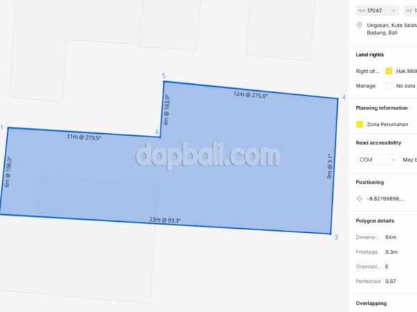 46972 – Strategic Small Plot Investment Land of 180 sqm in Toyaning, Ungasan