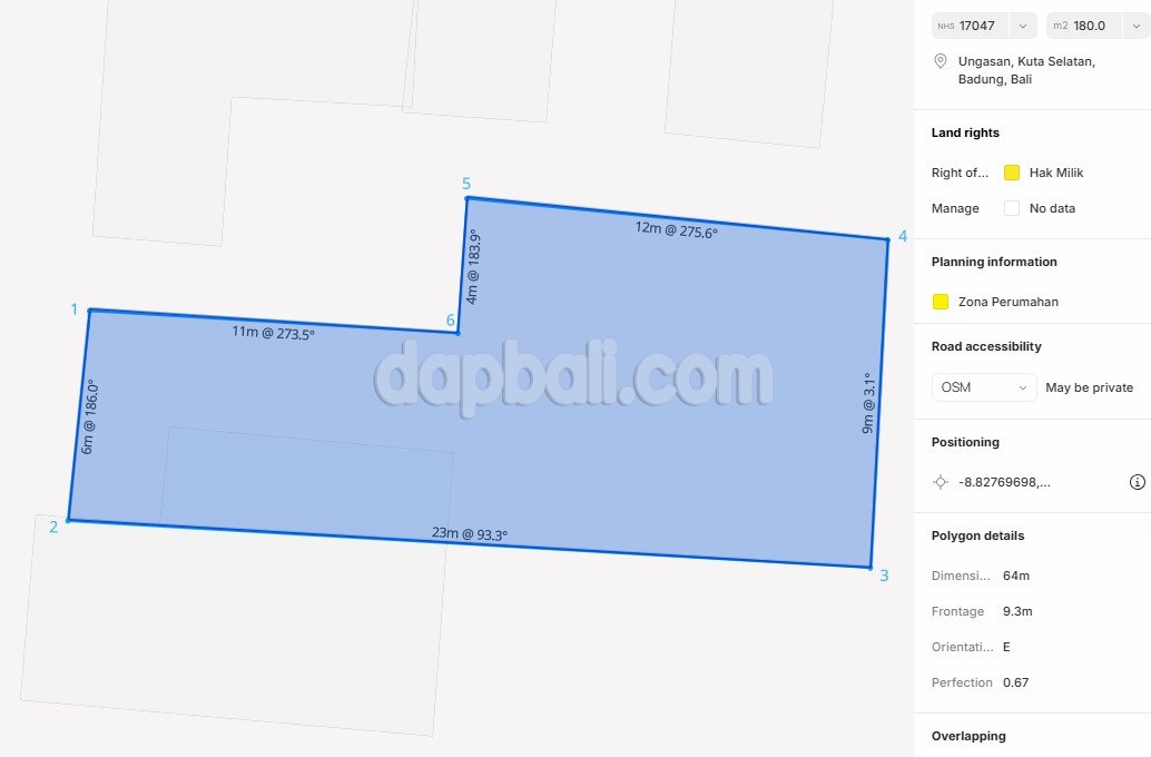 A rare opportunity to acquire a small, affordable freehold land plot in the highly sought-after Ungasan area, South Bali—surrounded by established villas and hostels and located just ± 3 km from Melasti Beach. This 180 sqm (1.8 are) flat and ready-to-build land is perfectly sized for a commercial villa, guesthouse, or compact hospitality project. Positioned within a quiet residential enclave with 5-meter road access, the plot offers privacy while remaining close to key tourism hubs.