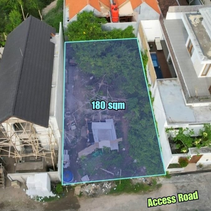 A solid opportunity to acquire a small freehold land plot in the growing Pura Toyaning – Ungasan area, strategically located within an established villa neighborhood. This plot is ideal for buyers seeking an efficient-sized land for a private villa or a compact commercial villa project. The land measures 180 sqm with approximate dimensions of 10 x 18 meters, offering a practical layout for modern villa design. The plot is west-facing and features a flat, solid contour, allowing for immediate construction with minimal site preparation.