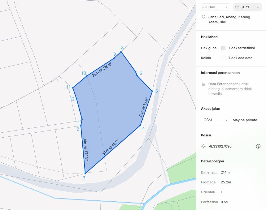 47138 – Scenic Riverside Land of 3173 sqm for Sale in Laba Sari, Karangasem