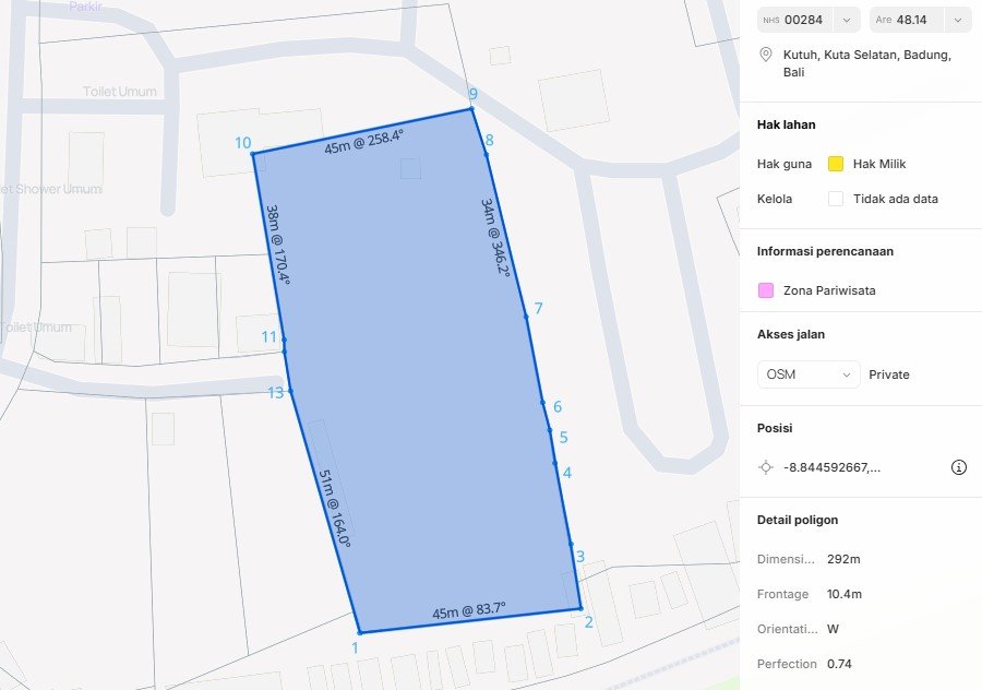 A rare opportunity to acquire absolute beachfront land in the prestigious Pandawa Beach tourism area, one of South Bali’s most sought-after destinations. This property offers direct access to white sand beach, located within a secure one-gate system inside the official Pandawa tourism zone. With Pink zoning and a fully flat contour, the land is perfectly suited for the development of a luxury hotel, beachfront resort, exclusive villas, or entertainment complex with strong long-term investment potential. Facing South and West, the property enjoys optimal ocean exposure, refreshing sea breezes, and stunning sunset views over the Indian Ocean. This is a limited beachfront asset in South Bali, ideal for investors seeking a high-impact development opportunity in a rapidly growing tourism corridor.