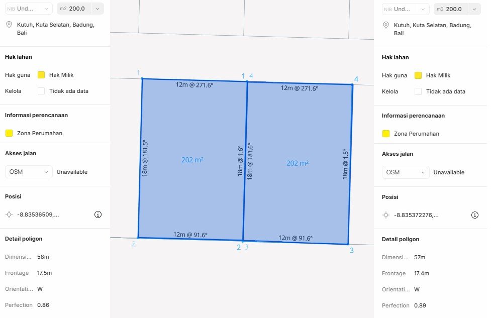 • Total land size: 400 sqm divided into 2 plots (200 m² each)