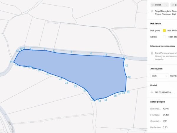 48291 – Strategic Pink Zone 8,490 sqm Land for Lease in Tegal Mengkeb – Ideal For Resort Or Villa Project