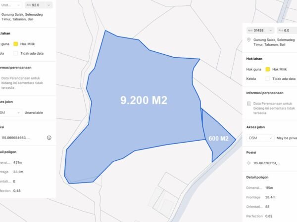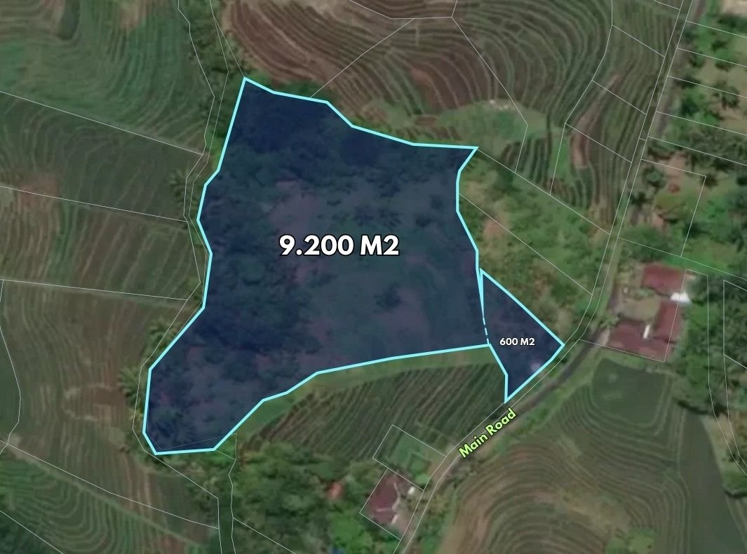 This land is strategically located in Gunung Salak Village, East Selemadeg, Tabanan, directly in front of the Village Head (Perbekel) Office, offering excellent accessibility and strong future potential. This area is easily reached via an asphalt road and is approximately 30 minutes from Tabanan City, making it suitable for tourism-oriented and residential development. Spanning a generous 9,800 m² (98 are) with a 27-meter frontage and a pocket-shaped (ngantong) layout, the land features a beautiful rice field view and a peaceful rural atmosphere. Zoned Yellow (Residential) under ITR and holding a Freehold Certificate (SHM), the land is legally secure and flexible for development. Its size and setting make it ideal for a glamping project, eco-tourism destination, villa complex, or residential development.