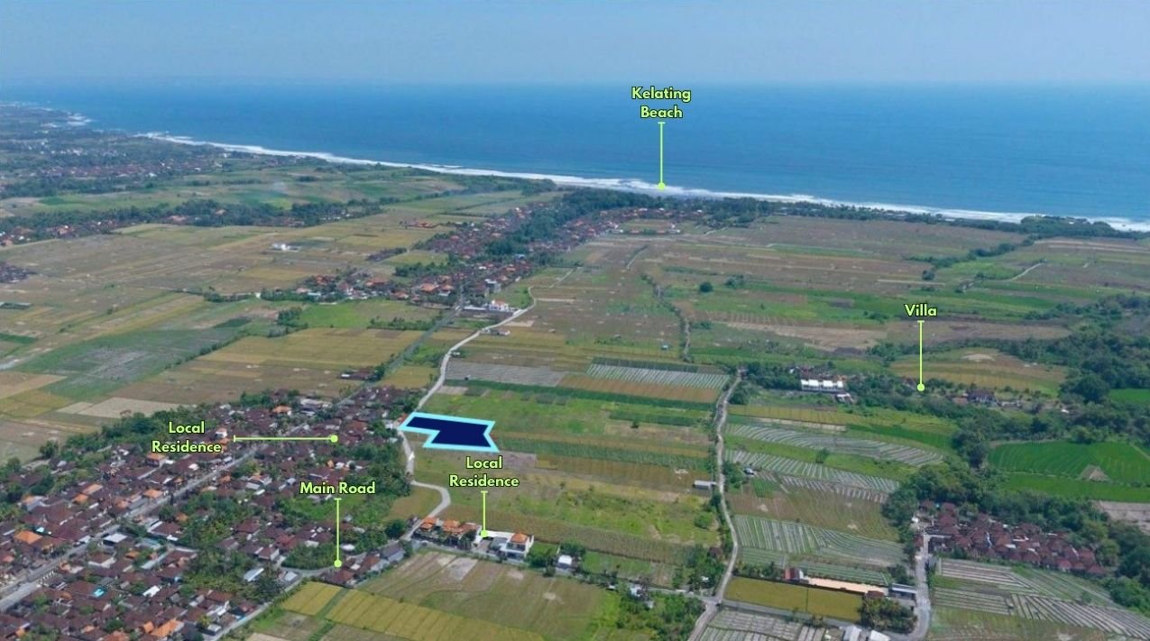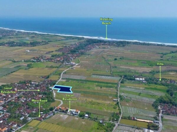 Located in Kelating, Tabanan, this leasehold land is situated in a rapidly growing coastal area with strong tourism potential. According to the map, the surroundings are developing with villas and hospitality projects while still maintaining a peaceful environment—perfect for long-term investment or villa development.
