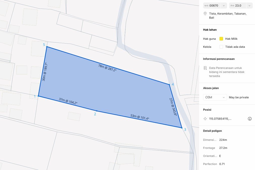 Freehold land with rice field and mountain views, dual access, and a flat ready-to-build contour is increasingly rare in Tabanan.