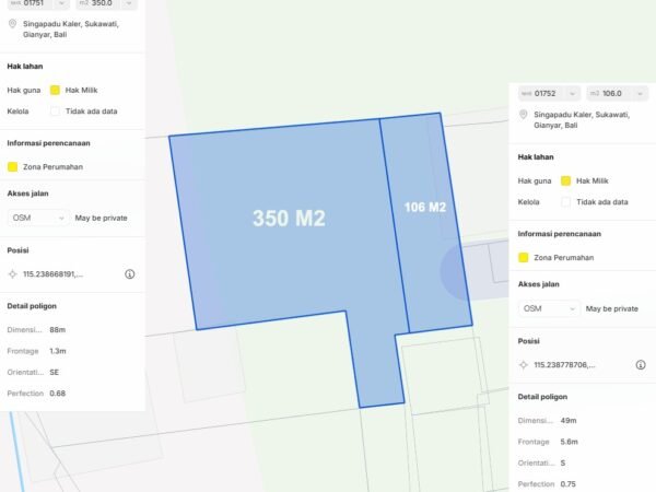 This land is located in Gianyar, specifically in Singapadu Kaler, a peaceful and steadily developing residential area. Based on the map location, the property offers car access, a quiet neighborhood atmosphere, and proximity to Ubud’s lifestyle amenities, making it highly attractive for both living and investment. Ubud remains one of Bali’s most in-demand areas for property due to its strong cultural appeal, natural surroundings, and consistent demand for residential and rental properties.